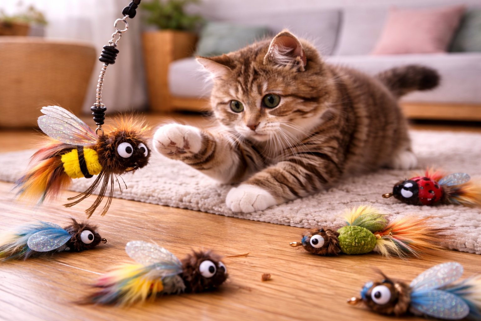 A well-designed little bug teaser refill uses durable materials, secure attachment points, and non-toxic components. Because cats may bite or claw the toy during capture, reinforcement is essential.