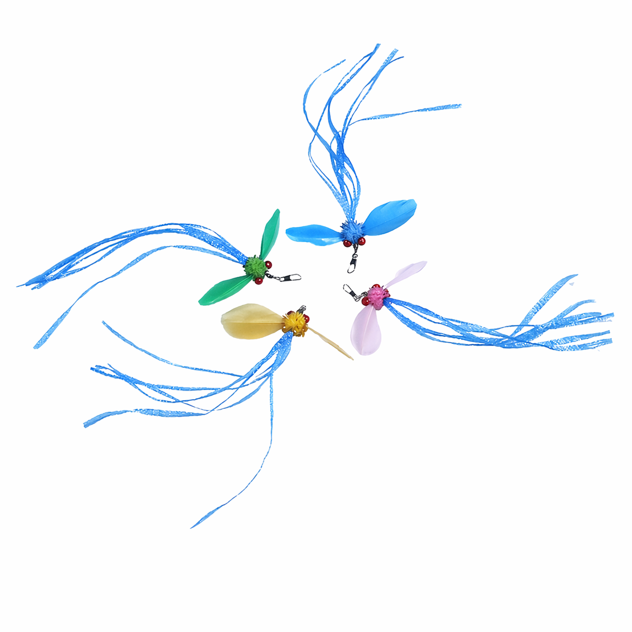 This Spinning Butterfly Cat Wand Refill features a lightweight butterfly-inspired design with colorful wings, bead details, and long flowing ribbons that create lively spinning and fluttering motion during play. Designed to imitate the movement of a flying insect, it helps stimulate a cat’s natural hunting instincts and encourages chasing, pouncing, swatting, and jumping. With a size of 22 × 12 × 2 cm and a weight of only 2 g, this realistic insect teaser replacement head is easy to swing, spin, and attach to a cat wand. The bright colors and trailing ribbon tails add extra visual movement, making it an ideal choice for interactive cat wand toys, indoor exercise, and daily enrichment. Suitable for cat owners, pet toy sellers, and wholesalers, this butterfly cat wand refill attachment adds motion, color, and playful excitement to interactive cat toy collections.