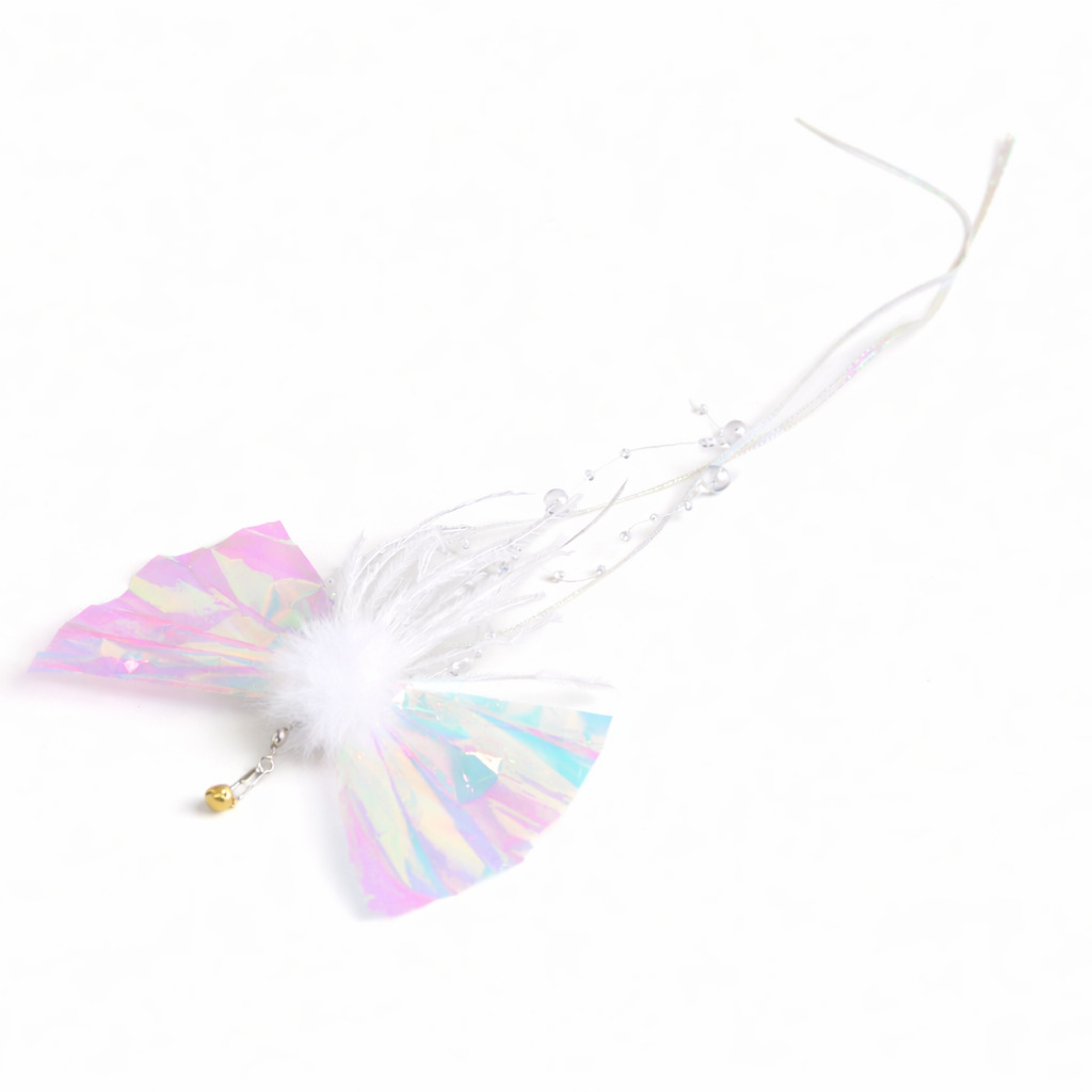 This Candy Butterfly Cat Wand Refill features a delicate butterfly-inspired design with iridescent wings, soft feather accents, and a lightweight teaser structure that easily captures a cat’s attention. Designed to mimic the fluttering movement of a real insect, it helps stimulate natural hunting instincts such as chasing, jumping, pouncing, and swatting. The long string design creates flowing motion during play, making this realistic insect teaser replacement head a beautiful and engaging option for interactive cat wand toys. With its lightweight 3 g construction, this refill attachment is easy to swing and suitable for daily cat enrichment, indoor exercise, and playful bonding time. Its elegant appearance and lively movement also make it a great choice for pet toy sellers, wholesalers, and cat owners looking for eye-catching butterfly cat wand refill attachments.