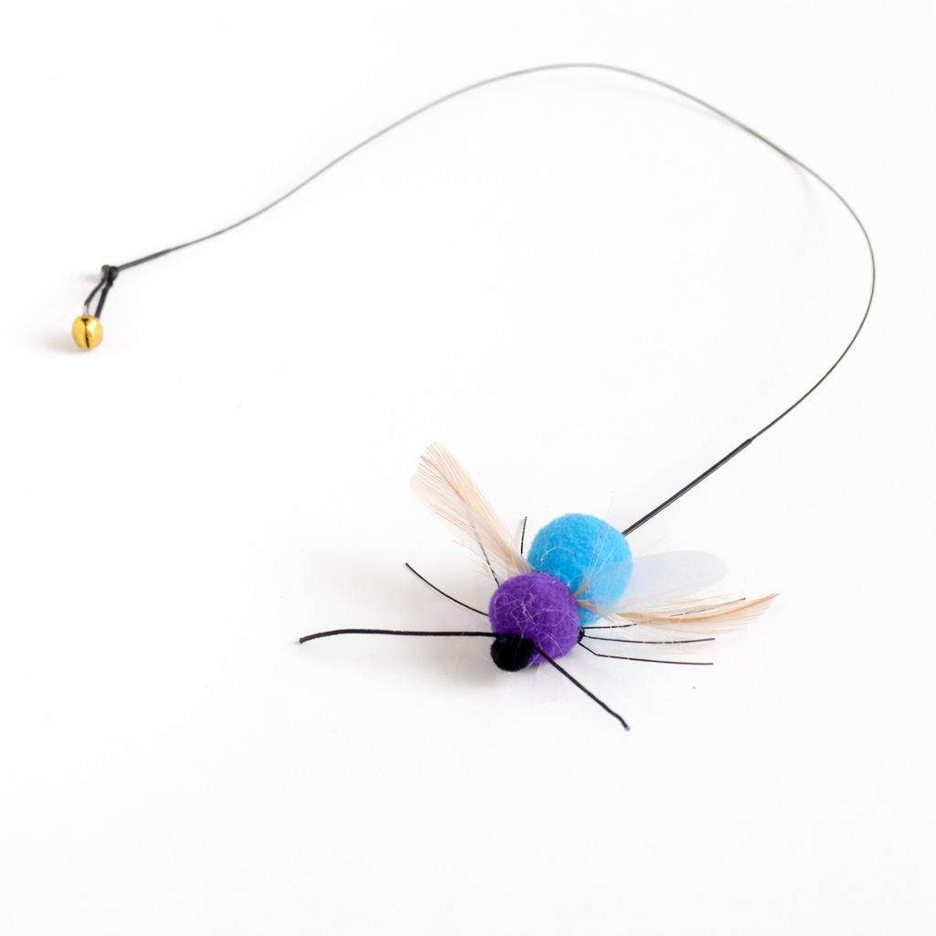 This iridescent wing beetle cat wand refill is designed to capture a cat’s attention with its bright colors, lightweight structure, and insect-inspired shape. Featuring soft feather-style wings, crinkle material details, and long string-like legs, this playful refill creates fluttering movement and subtle sound during interactive play. The compact size of 5 × 5 × 3 cm and light 3 g weight make it easy to swing, bounce, and attach to a cat wand, helping encourage chasing, pouncing, and swatting behavior. Inspired by realistic bug motion, this feather crinkle insect replacement head is a great choice for cat teaser toys, daily enrichment, and interactive exercise. It is suitable for pet toy sellers, wholesalers, and cat owners looking for colorful and engaging cat wand refill attachments that support natural hunting instincts.