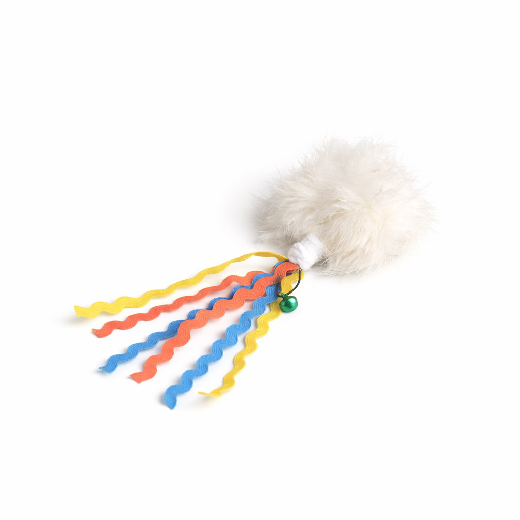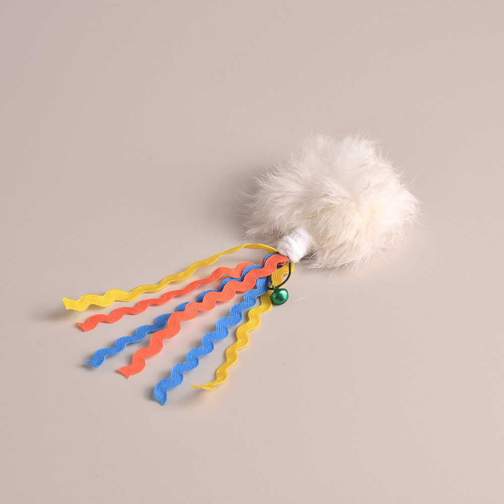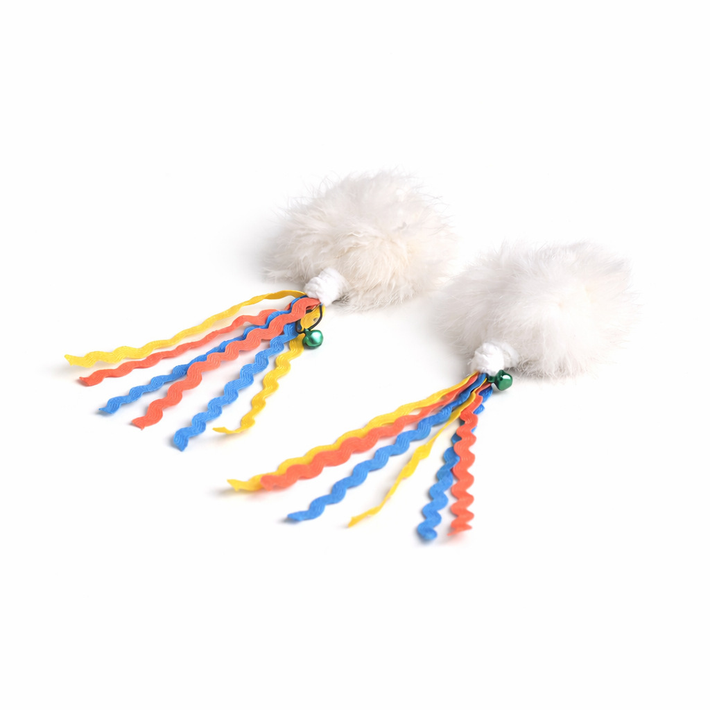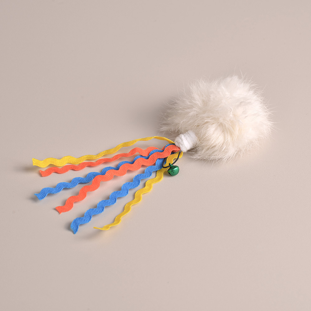 This Fengrong self-play cat toy features soft rabbit fur pom-poms paired with colorful ribbon tails and a small bell, creating a multi-sensory play experience for cats. The natural fur texture mimics real prey, while the vibrant ribbons flutter and attract attention, encouraging chasing, biting, and batting. The built-in bell adds sound stimulation, keeping cats engaged even during solo play. Lightweight and easy to move, it’s perfect for indoor cats to release energy and reduce boredom. Ideal for pet stores, e-commerce sellers, and wholesale buyers, this rabbit fur cat toy is designed to increase customer satisfaction and repeat purchases with its attractive design and interactive features.