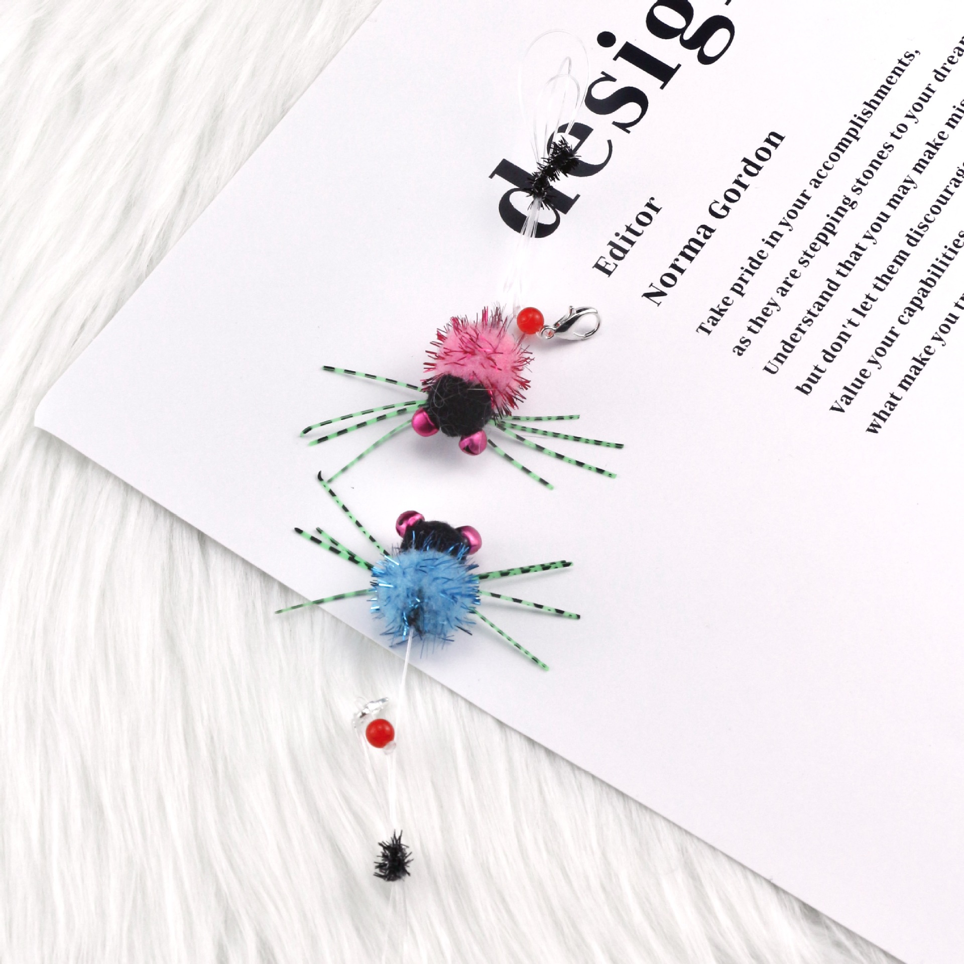 The Inverted Spider Cat Toy Wand Replacement Head is an innovative toy that will captivate your cat’s attention. Featuring a realistic spider design, this toy's head faces downwards, creating an intriguing, lifelike experience for your feline friend. The bouncy silicone legs shake with every movement, and the small bells in the spider’s eyes make playful sounds, enhancing interactive playtime. The long string version (40 cm) further sparks your cat’s hunting instincts, encouraging chasing and pouncing. This toy will keep your pet entertained for hours while providing them with exercise and mental stimulation.