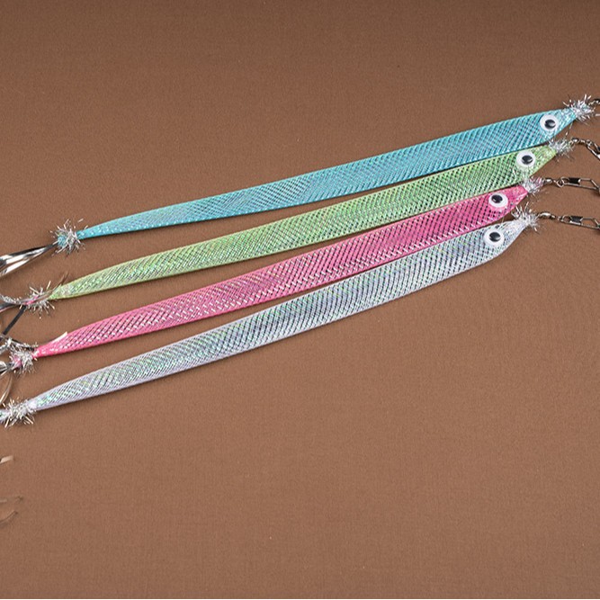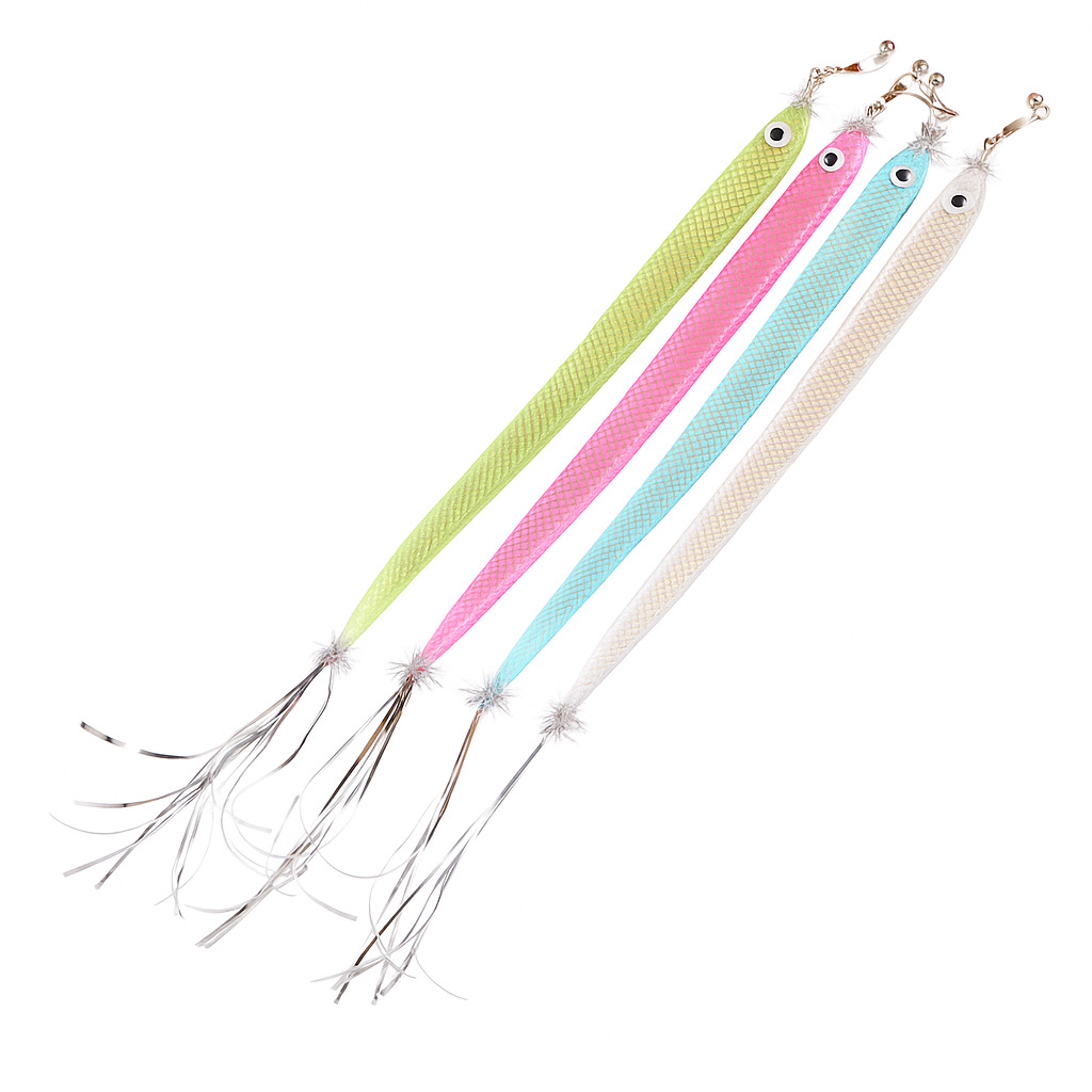 This realistic hairtail fish cat wand refill features a long, slim body with a shimmering surface that catches light beautifully during play. Inspired by the shape of a real hairtail fish, it is designed to create lively movement that easily attracts a cat’s attention and stimulates natural chasing and hunting instincts. The refill head measures 30 cm in body length, with a 3–5 cm tail and a width of 2 cm, making it lightweight, flexible, and easy to swing. Available in multiple soft metallic colors, it is ideal for interactive cat wand play and suitable as a replacement attachment for teaser toys.